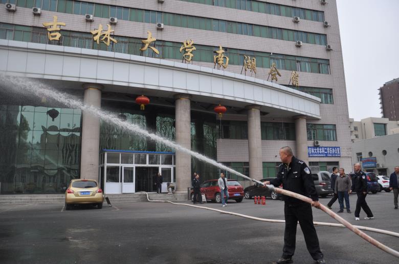 2015 年 4 月 28 日上午 8 时,在南湖会馆门前场地组织了南湖校区义务消防队(南湖校区后勤保卫办全体、相关单位成员)实战演练。科目一:墙壁消火栓使用方法、射程及灭火演练;科目二:干粉灭火器扑灭火源演练;科目三:战地疏散及抢救演练。南湖校区后勤保卫办主任王天凌对实战演练进行布置并提出要求,通过演练大家掌握了基础的消防常识和技能,为及时准确应对南湖校区突发火情打下了坚实基础。