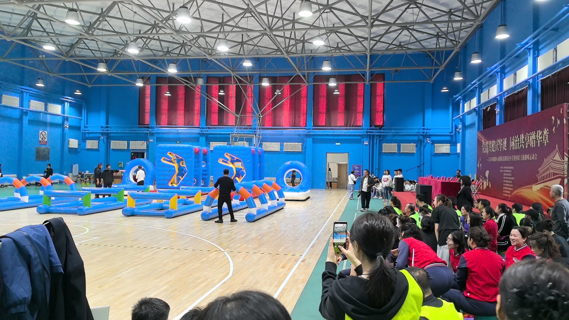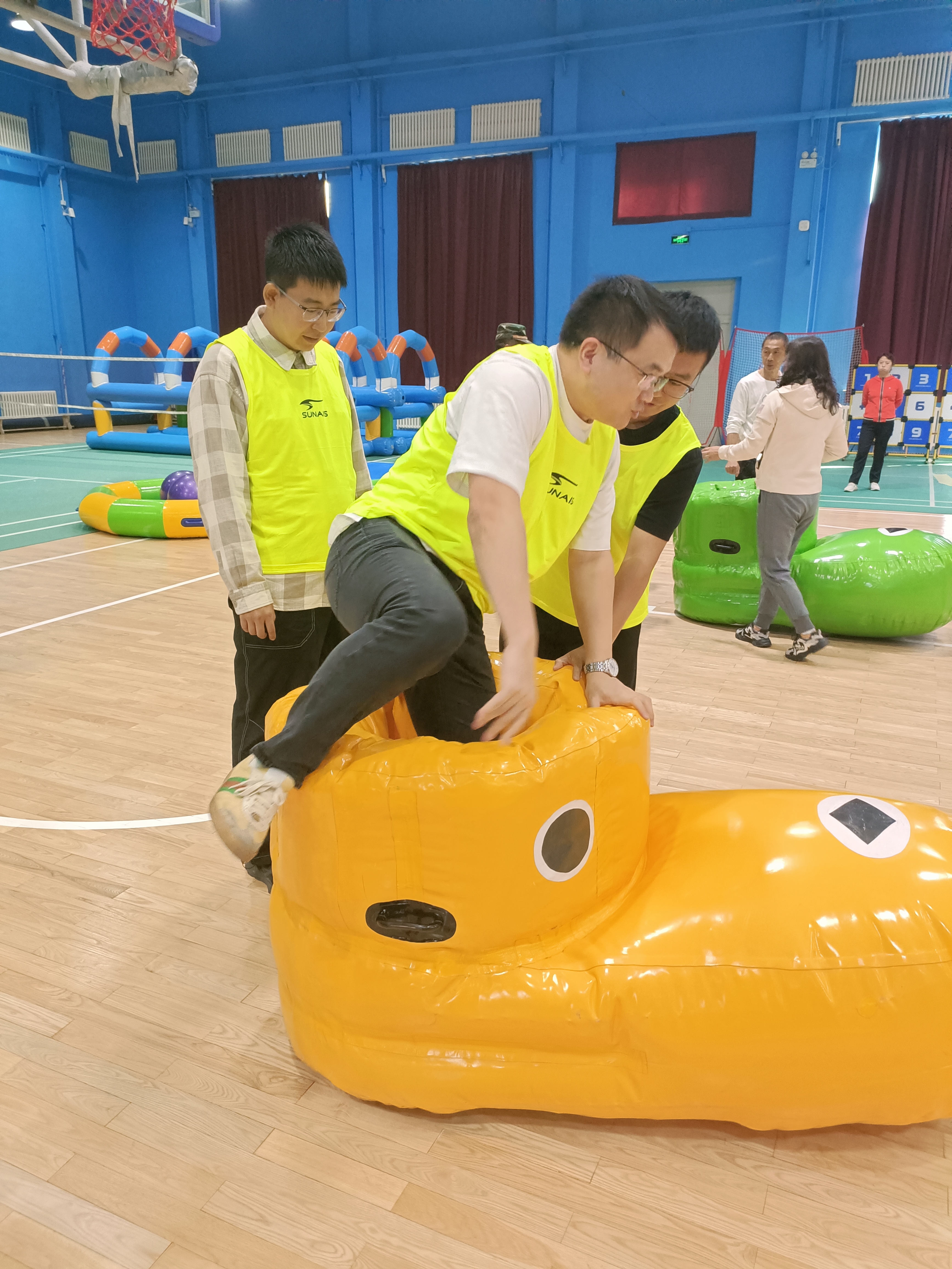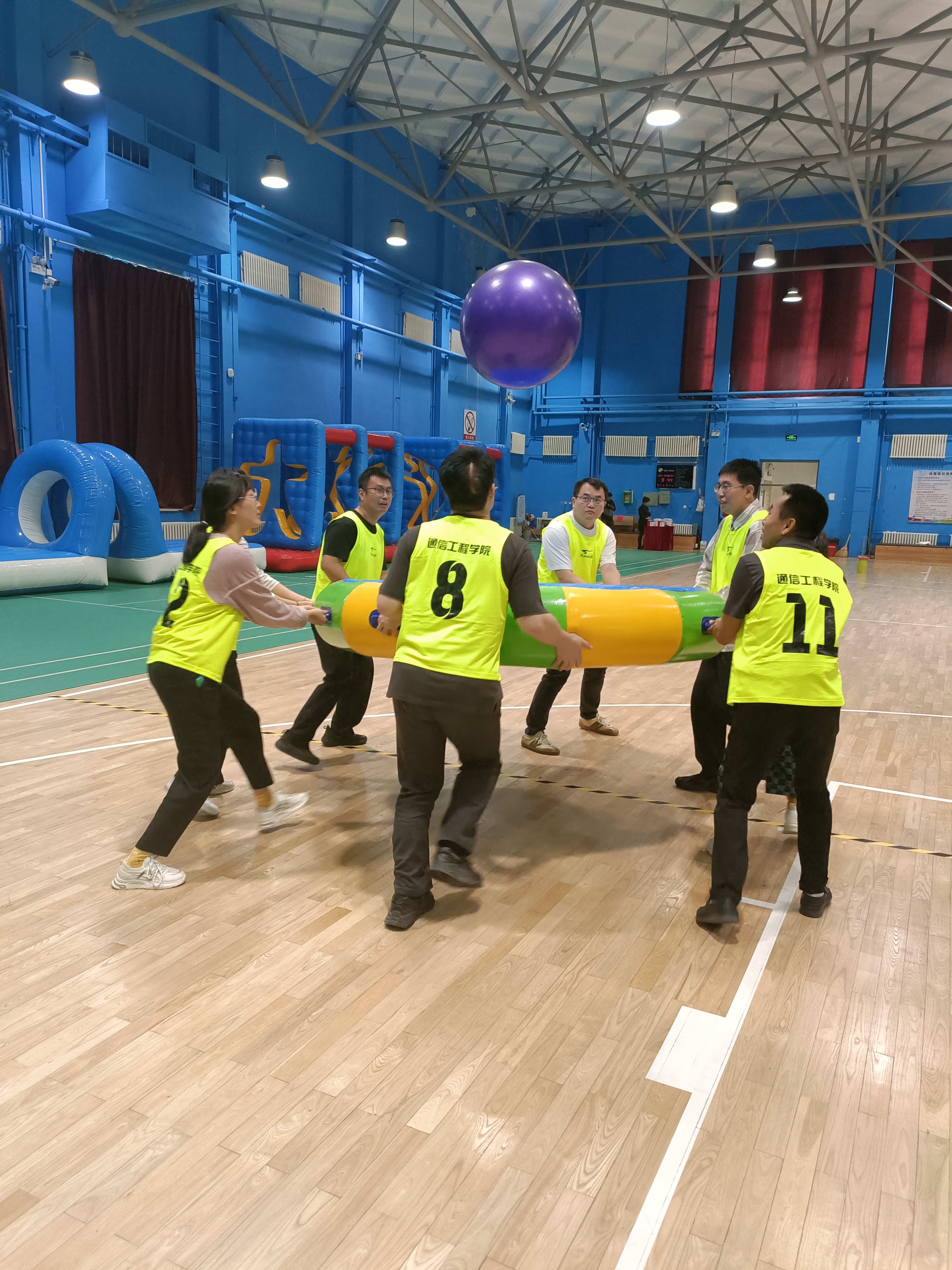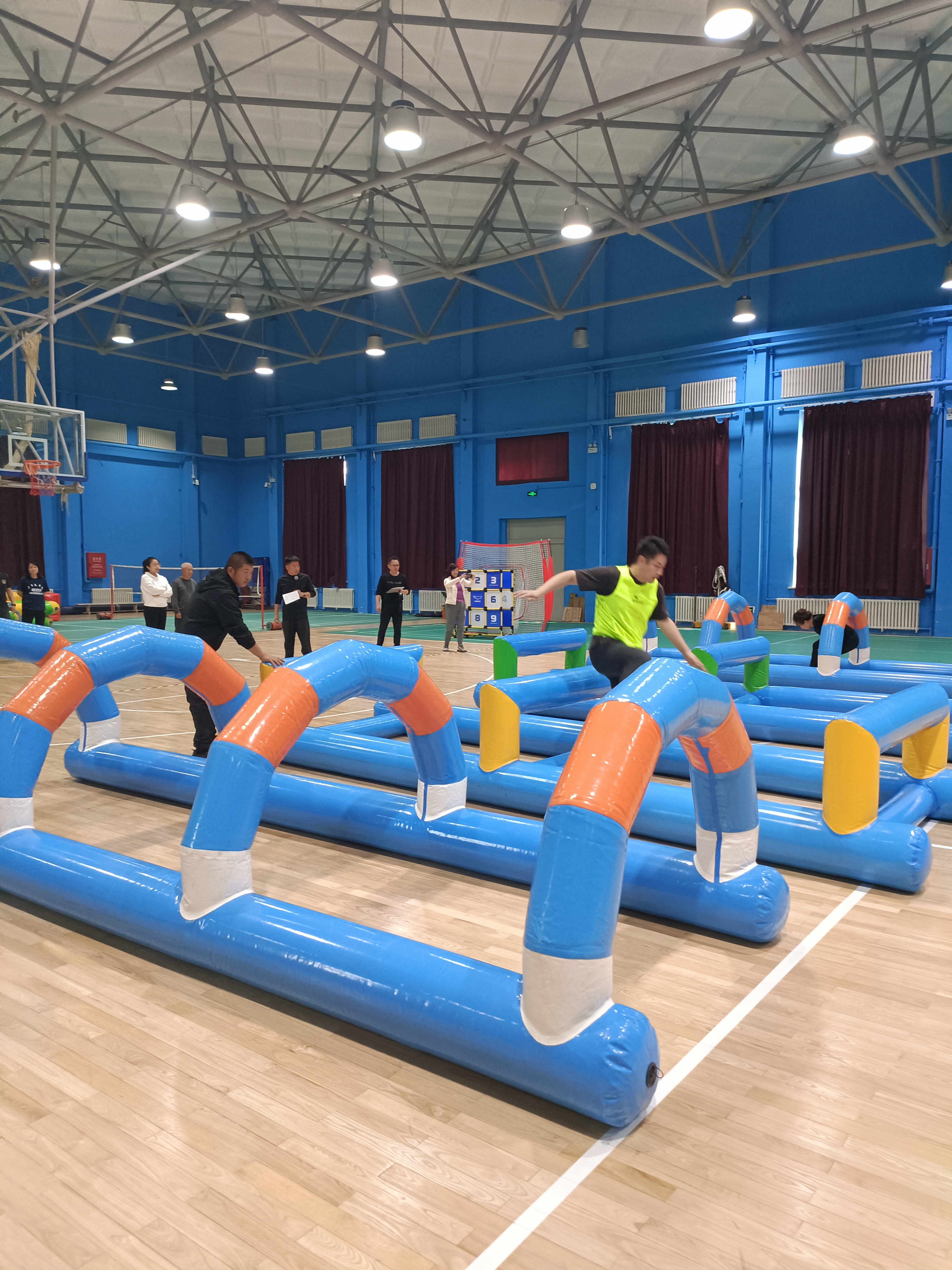 精心设计的飞盘嘉年华(团队飞盘闯关赛)、众星捧月、攻坚克难、快乐大脚、团队冰壶等项目,不仅考验了参与者的体能与技巧,更考验了团队之间的协作与默契。比赛现场气氛热烈,加油声、欢呼声此起彼伏,各队队员奋力拼搏,力争上游,展现了团结协作、积极向上的精神风貌。