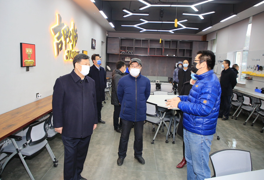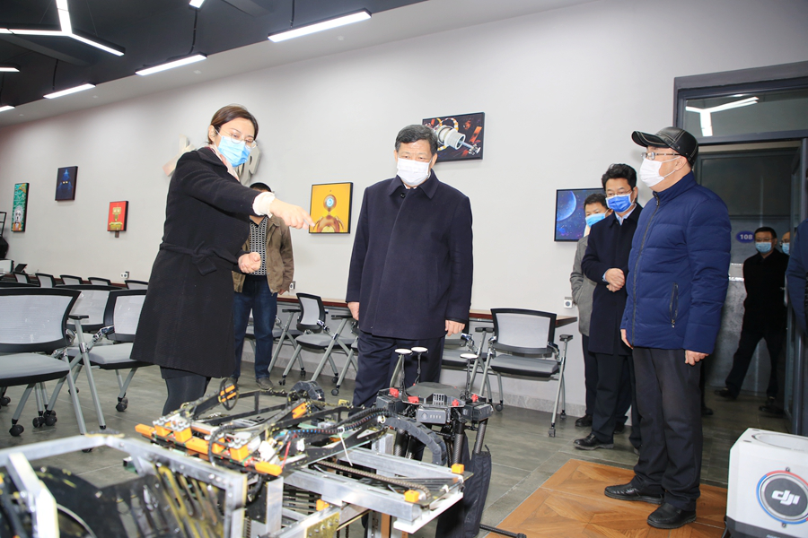 在南湖校区,姜治莹来到第一教学楼,实地察看了吉甲大师梦工场—机器人实验室,就实验室的教学运行与管理、设备使用情况等与实验室老师进行交流,并对实验室能够资源共享、充分提高设备的利用率给予肯定。他鼓励老师们再接再厉,吸引更多专业的学生参与其中,抢占世界科技前沿阵地,着力提升人工智能领域学生培养水平,为国家建设提供人才支撑。