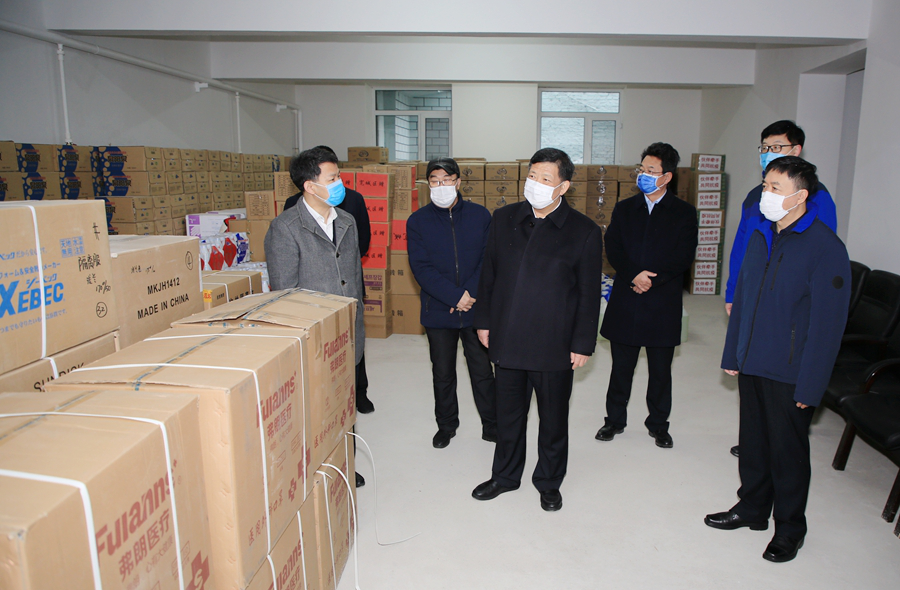 在防疫物资储备库,姜治莹察看了学校接受捐赠及购买的口罩、防护服、消毒液、酒精等防疫物资储备情况,强调各部门要将防疫物资用到实处。姜治莹指出,各部门要负起疫情防控主体责任,完善疫情防控内部责任机制和应急预案,落细落实人员排查、医学观察、卫生消毒、体温检测等各项防疫举措,齐心合力打赢疫情防控阻击战。