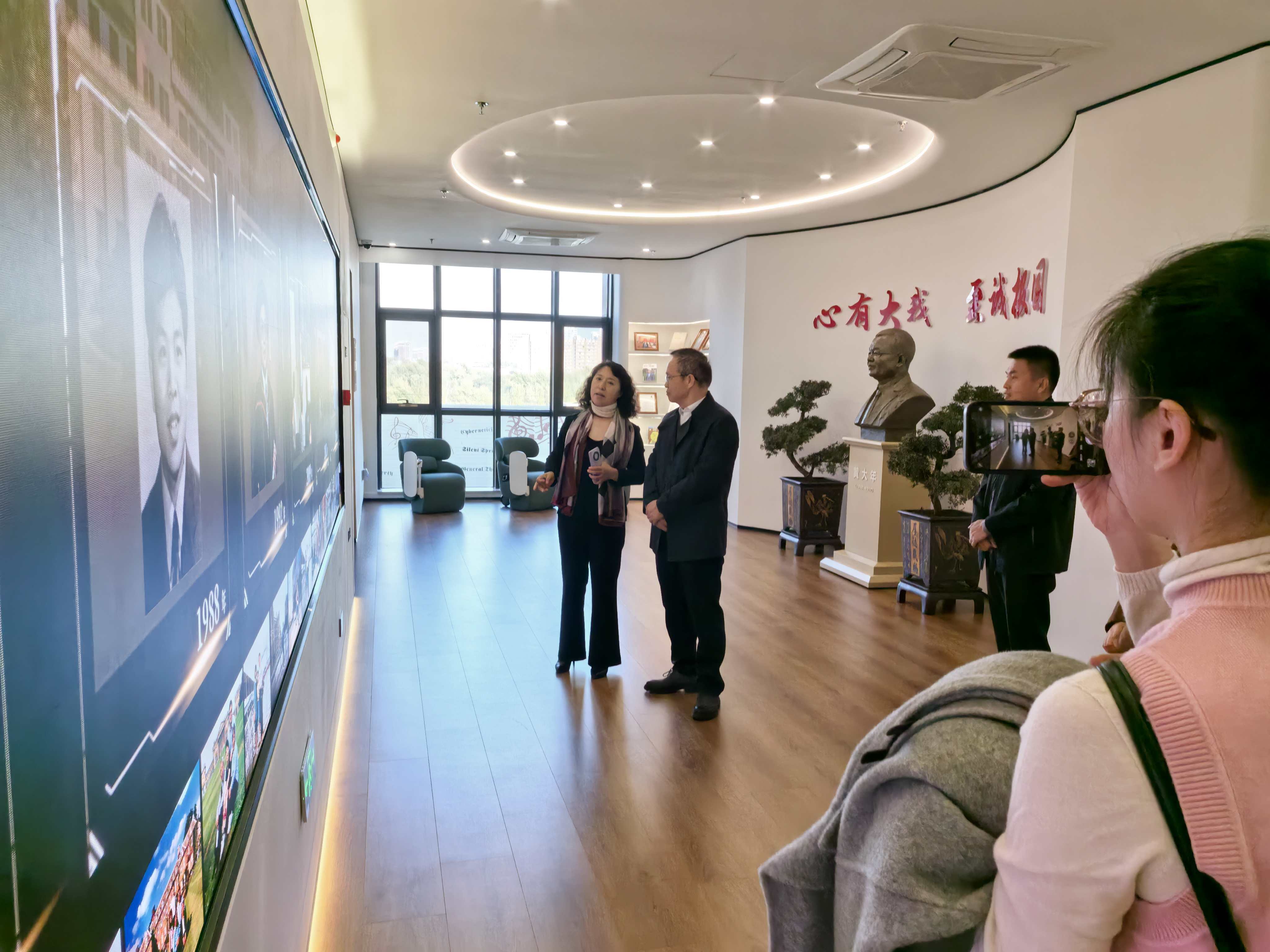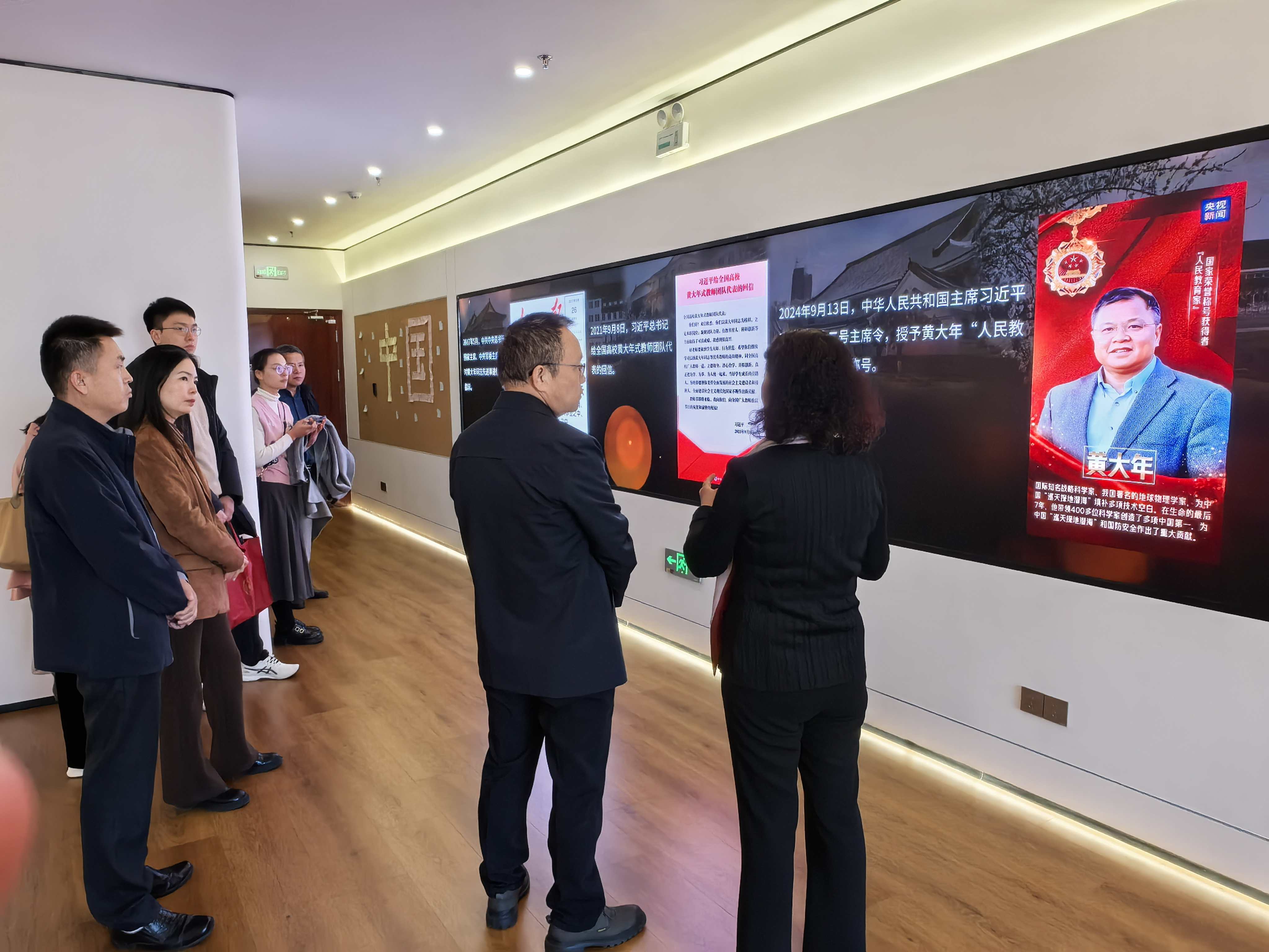 首先,李明章一行参观了“黄大年事迹展览”,重温了习近平总书记对学习宣传黄大年同志先进事迹的重要指示。通过详实的图文资料和实物展示,黄大年“心有大我、至诚报国”的感人事迹和崇高精神深深触动了每一位参观者。李明章主任表示,这次参观是一次深刻的精神洗礼,对黄大年精神有了更透彻的理解,其爱国情怀与奉献精神对于激励高校管理队伍担当作为、服务师生具有重要的现实意义。